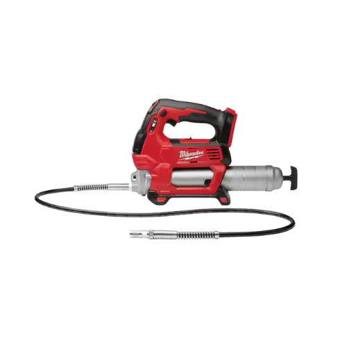 We offer an 18V battery-powered, one-handed operated Milwaukee grease gun customized specifically for use with food-grade grease. This setup gives you the power and convenience of a cordless industrial tool, combined with the cleanliness and safety required in food and beverage environments.
