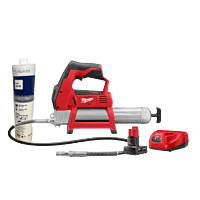 A compact, one-handed 18V Milwaukee grease gun customized for safe, efficient application of food-grade grease.
